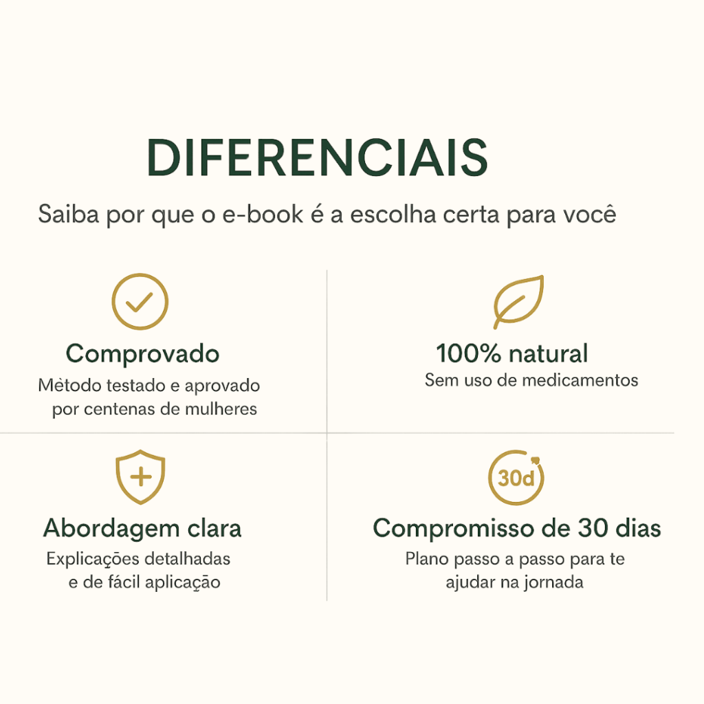 O diferencial do Método Rainha das Ervas é que ele pega na sua mão e te direciona através do passo a passo. Os passos são simples e fáceis de seguir, buscando sempre aumentar o seu bem-estar e qualidade de vida.
